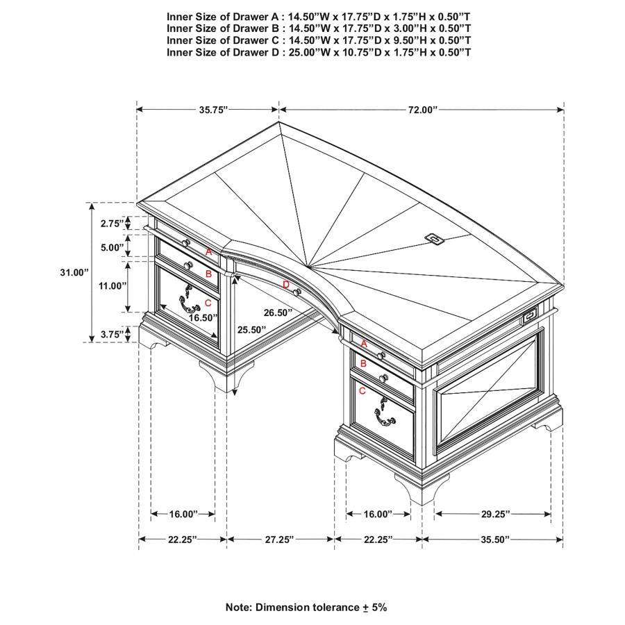 Hartshill Executive Desk with File Cabinets Burnished Oak 39 72 31.25 0